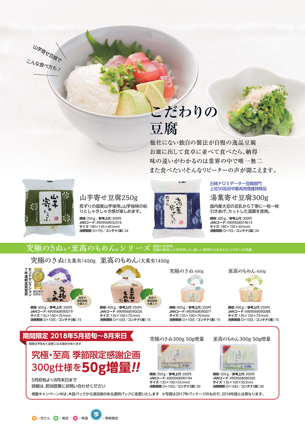 20年以上愛され続けた究極のきぬ・至高のもめんが冷やっこの最高に美味しい時期にだけ、特別に増量キャンペーンを行います。