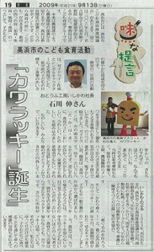 1度目の連載は「食育活動」というテーマで、2009年9月13日から10月18日にかけて全6回に渡り執筆させていただきました。※記事タイトルをクリックしていただくと、新聞記事のPDFがご覧いただけます。