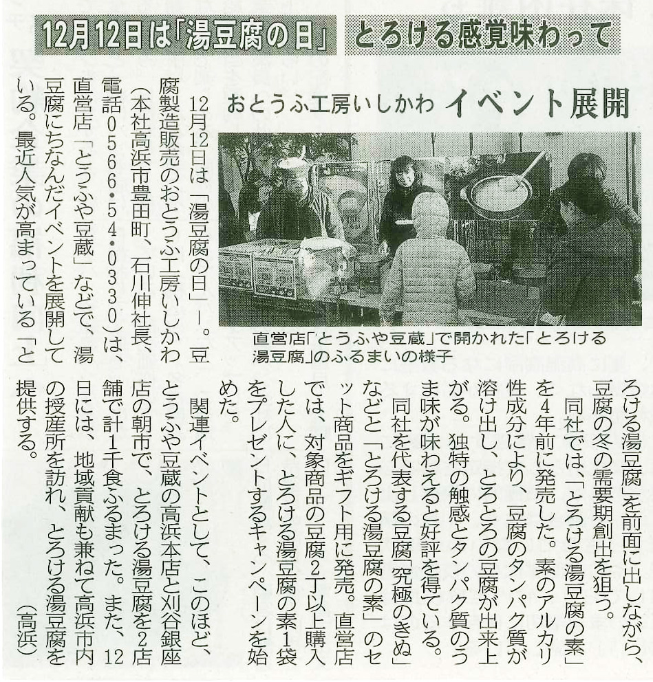 - 12月12日|12月12日は「湯豆腐の日」イベント展開【中部経済新聞】
