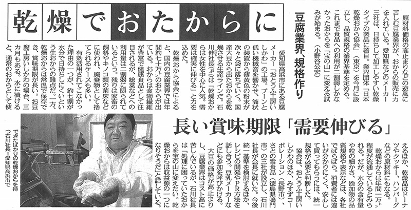 - 4月23日|食用乾燥おから増産【中部経済新聞】