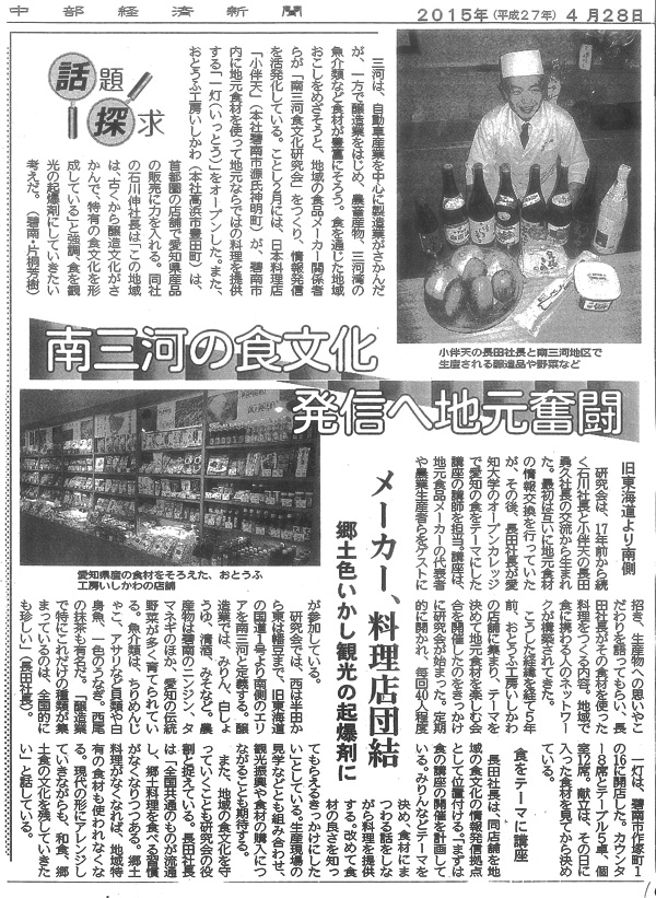 - 4月28日|南三河の食文化 発信へ地元奮闘【中部経済新聞】
